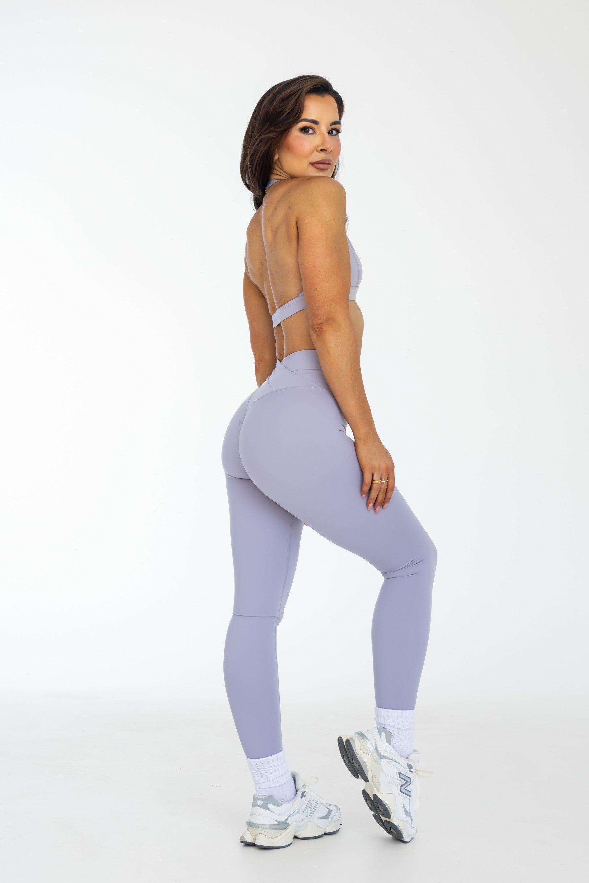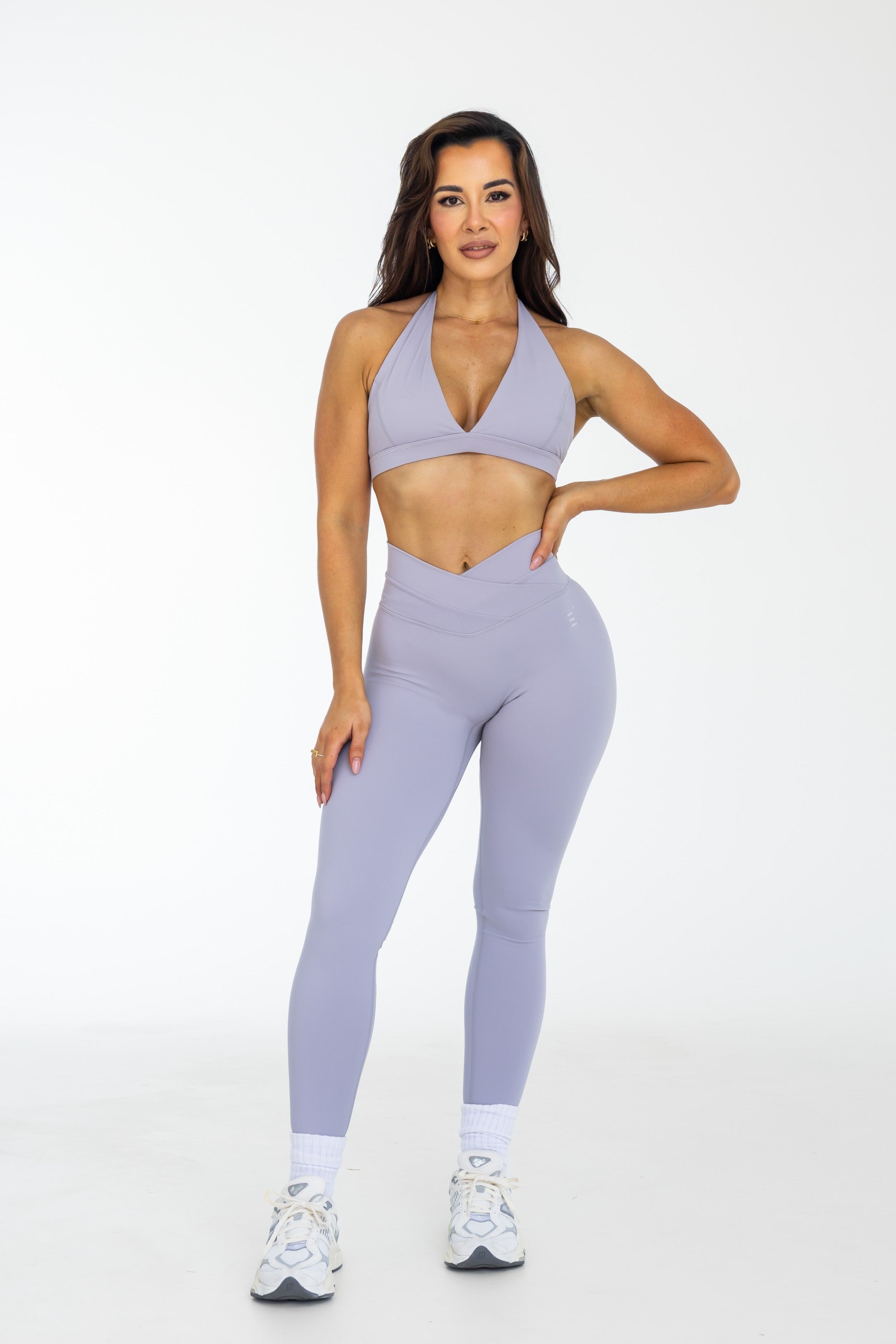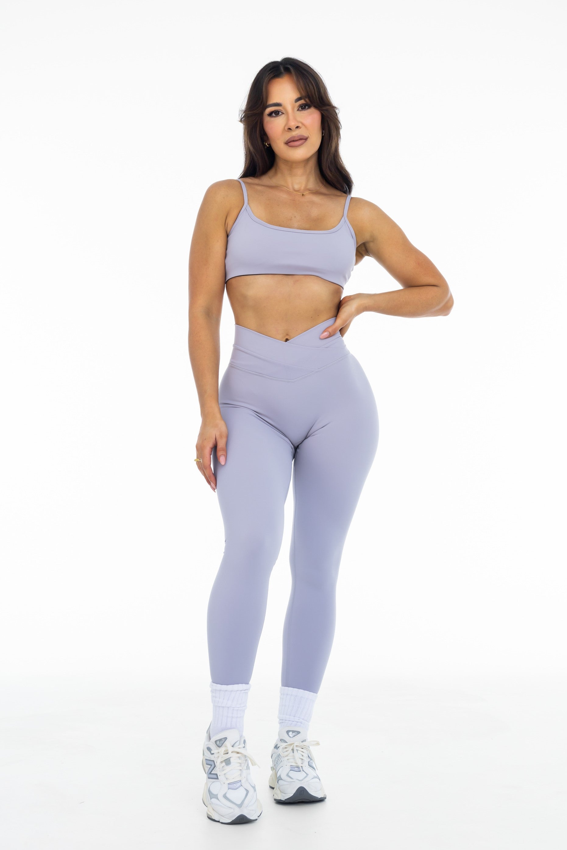 Crossover Scrunch Leggings - Lilac Grey
