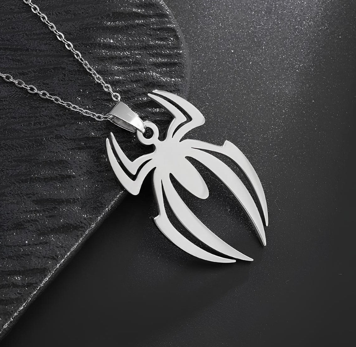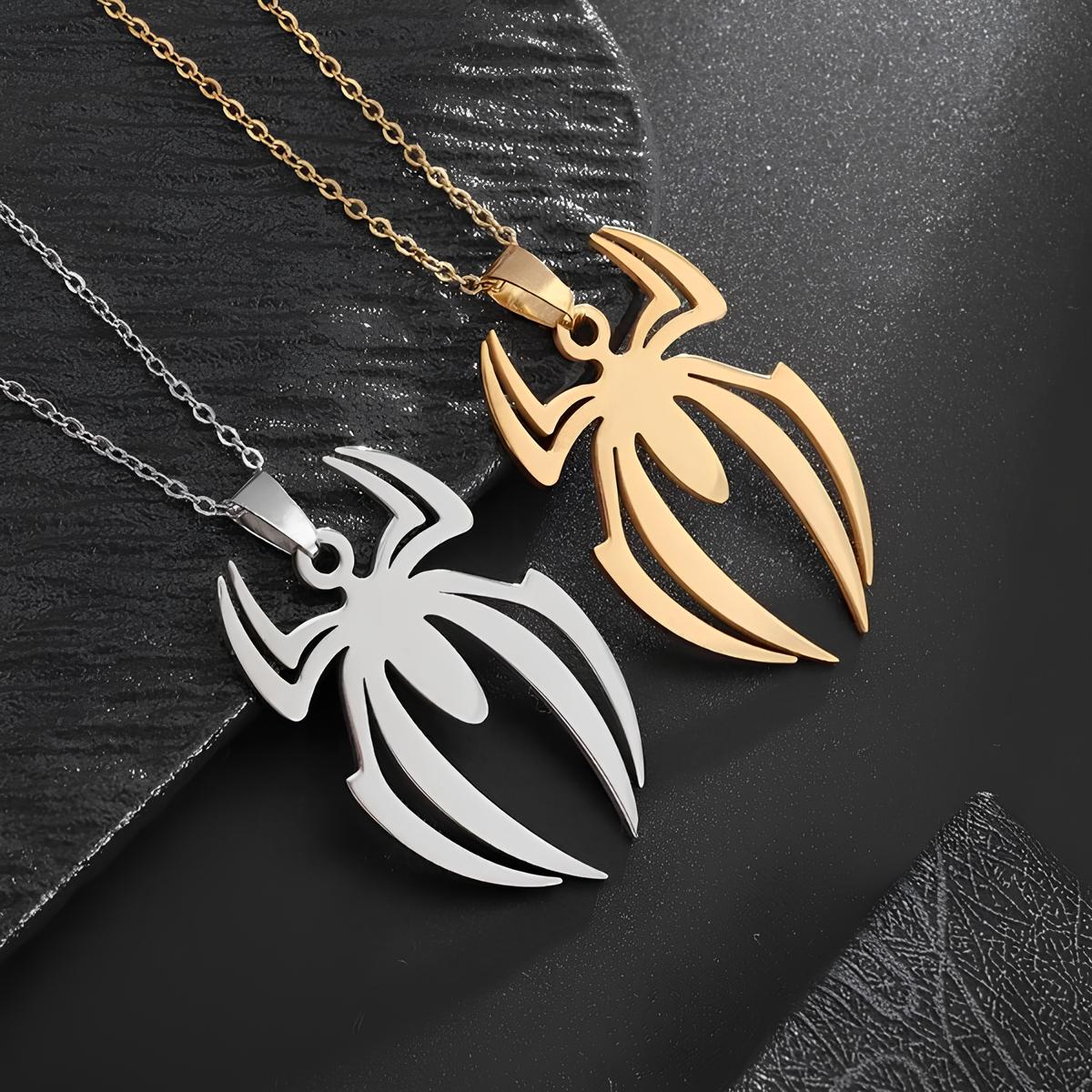 Introducing the Spider Necklace, a stainless steel homage to Spider-Man fans, available in silver and gold versions. Embrace your inner hero with this sleek accessory, perfect for any Spidey enthusiast.